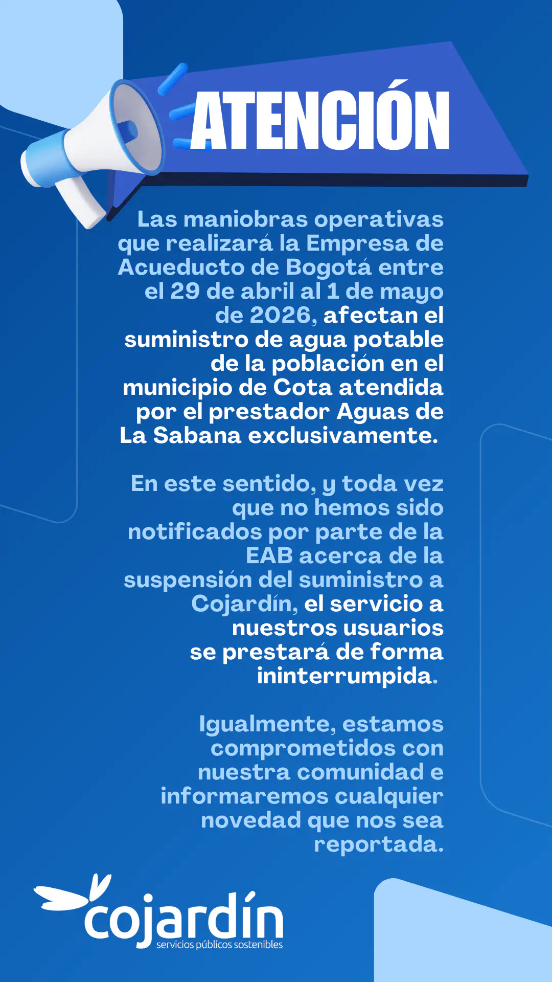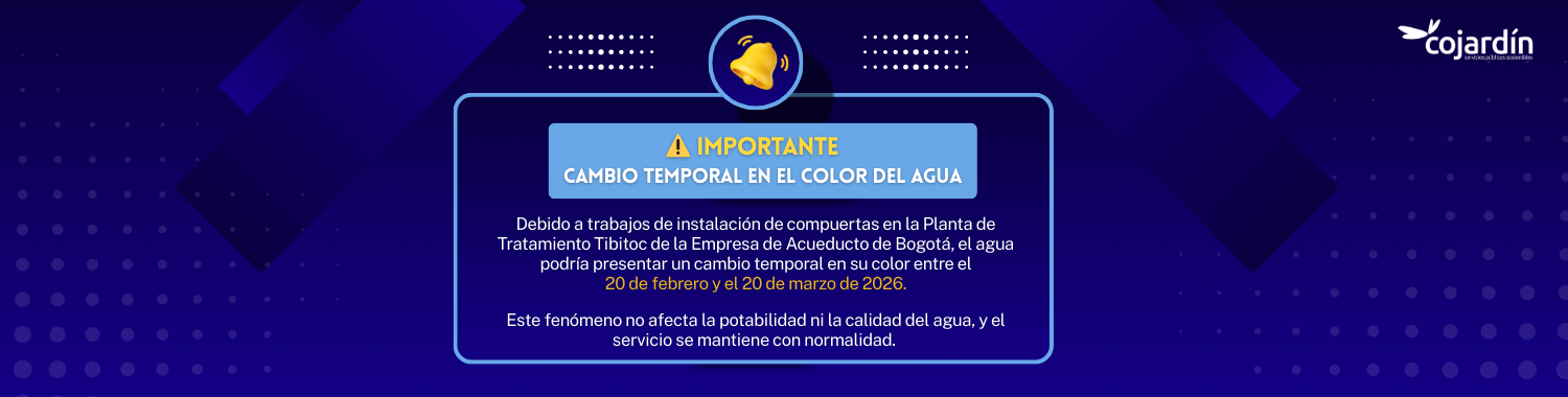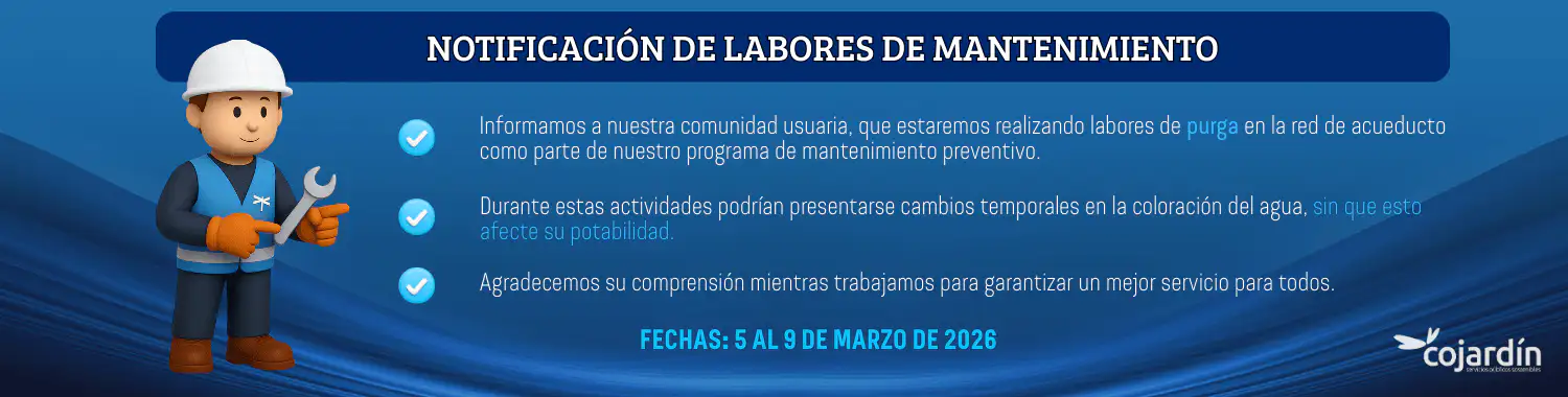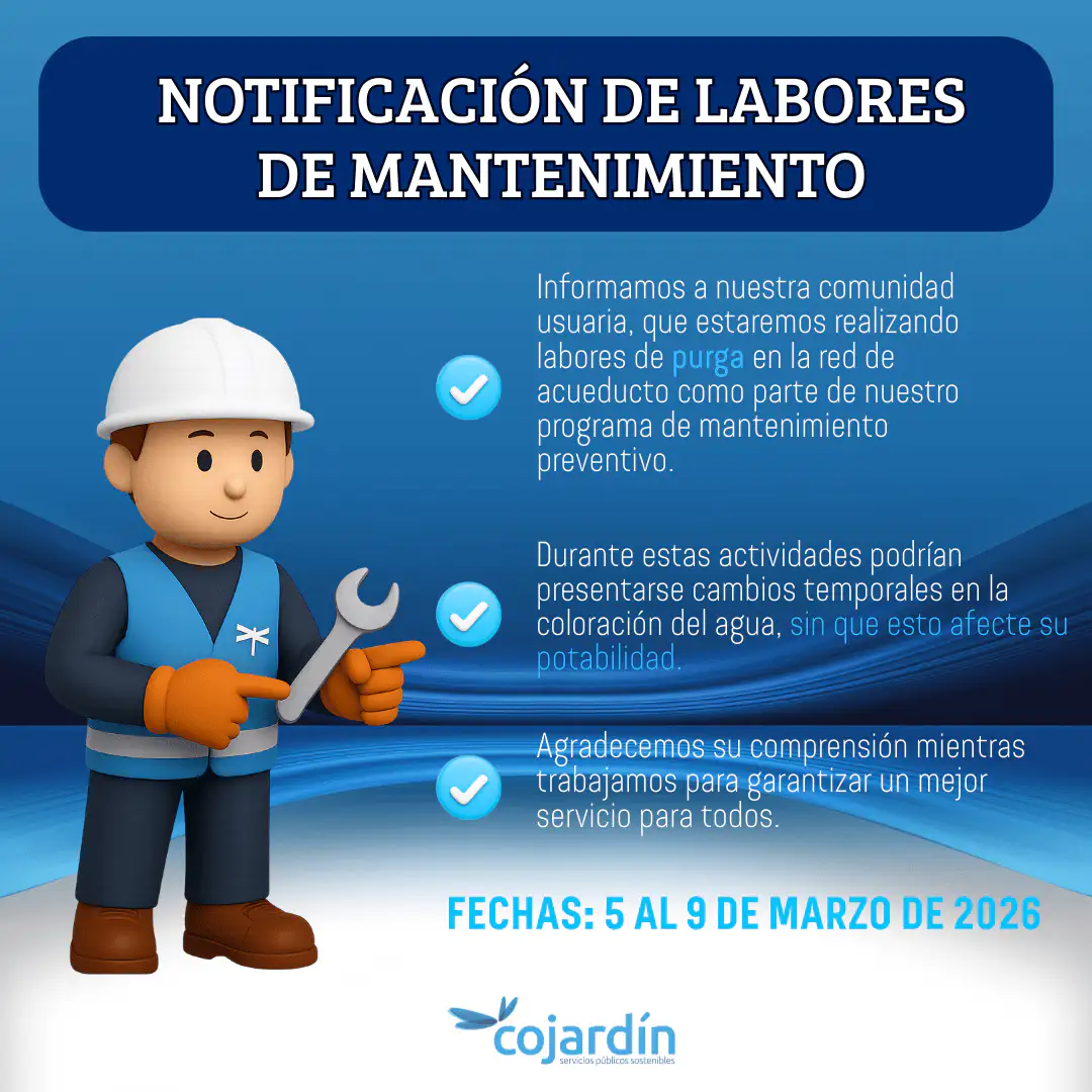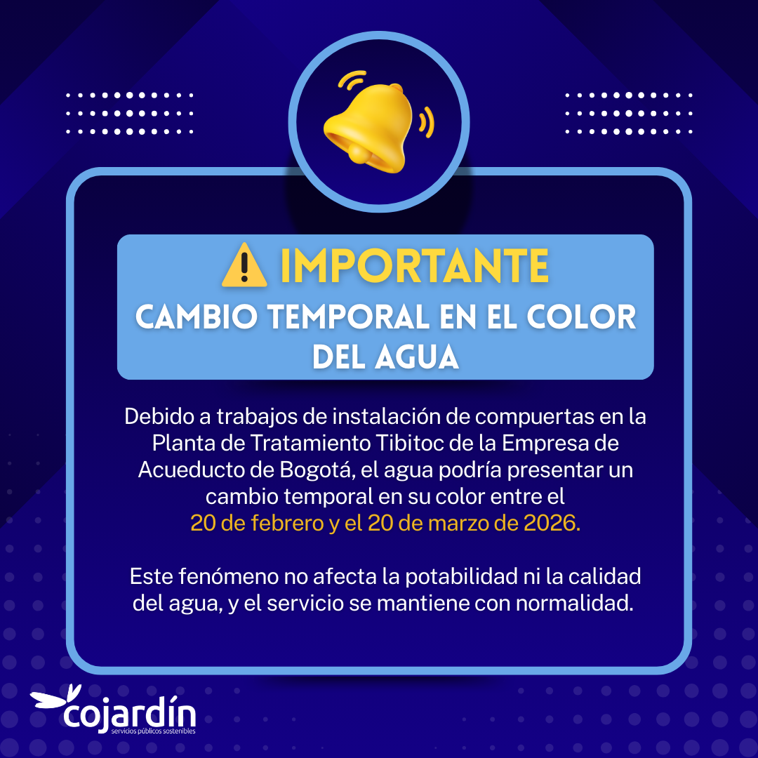 Cartelera VirtualCOJARDÍN S.A. E.S.P. informa a la comunidad que, debido a los cortes de energía eléctrica registrados en el sector durante el pasado fin de semana, se presentaron fallas técnicas en la Planta de Tratamiento de Agua Residual (PTAR) que atiende a la Agrupación Camino de Arrayanes. Nuestro equipo técnico ya se encuentra gestionando las […]